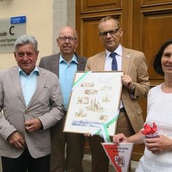 Fuldas Bürgermeister Dag Wehner, der als Geschenk zur Eröffnung ein Bild mit Motiven und Sehenswürdigkeiten aus Fulda mitgebracht hatte, skizzierte noch einmal die Historie der Zusammenarbeit zwischen Stadt und Sportkreis seit den 90er Jahren. Damals gab bereits ein winziges Räumchen für die Sportabzeichen-Stelle im Palais Altenstein. Die nun geschaffene Geschäftsstelle, die von der „Sportstadt Fulda“ gerne unterstützt werde, so Wehner, biete nun beste Voraussetzungen für einen guten Service für die Vereine sowie für eine gute Zusammenarbeit mit Sportamt der Stadt.