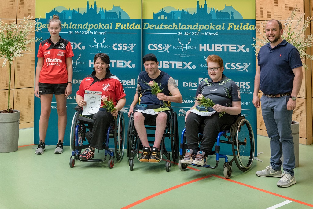 200 Begegnungen, 52 Rollstuhl-Tischtennisspieler/innen, 16 Ballkinder, 14 Tische, acht Turnierstunden: Das sind die blanken Zahlen des Deutschlandpokals im Rollstuhl-Tischtennis, der am Samstag, 26. Mai in der barrierefreien Florenberghalle in Künzell ausgetragen wurde. Hinzu kommen rundum zufriedene Organisatoren der Fuldaer Non-Profit Organisation sport grenzenlos und der TTG MargretenhaunKünzell sowie vier glückliche Sieger der Wettkampfklassen A, B, C und N.