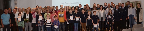 Bürgermeister Timo Zentgraf händigt den erfolgreichen Sportlern die Urkunden und Anstecknadeln des Deutschen Olympischen Sportbundes für überdurchschnittliche und vielseitige persönliche Fitness aus und gratulierte allen Teilnehmern.